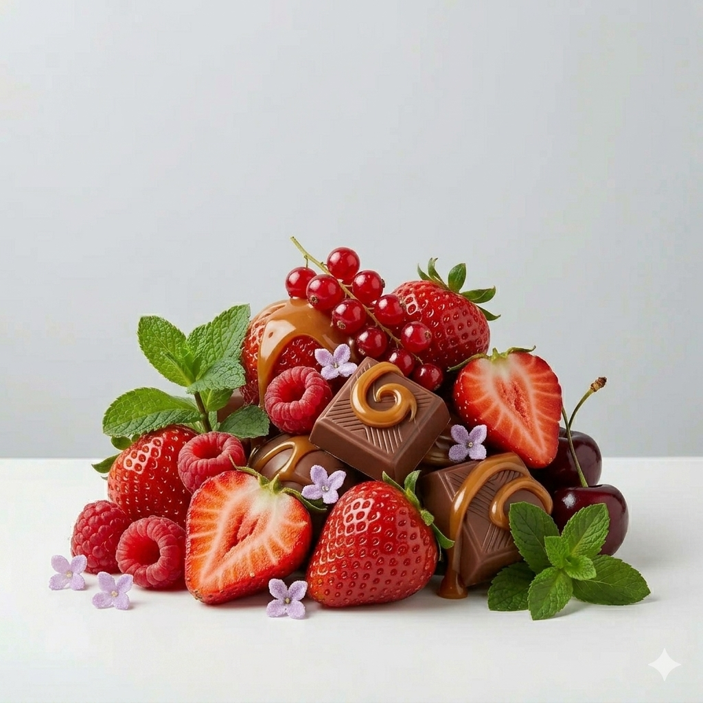 kırmızı meyveler sütlü çikolata karamel