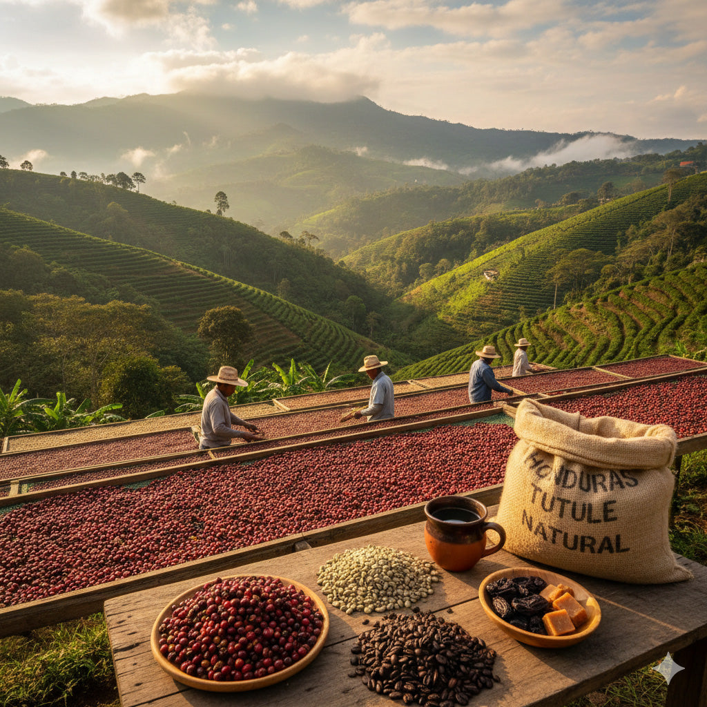 Honduras Tutule Natural, Honduras'ın La Paz bölgesindeki San Pedro de Tutule kasabası civarında yetişen, özellikle "Natural" (doğal) işleme yöntemi sayesinde gövdeli ve tatlı karakteriyle öne çıkan bir nitelikli kahve çekirdeğidir.